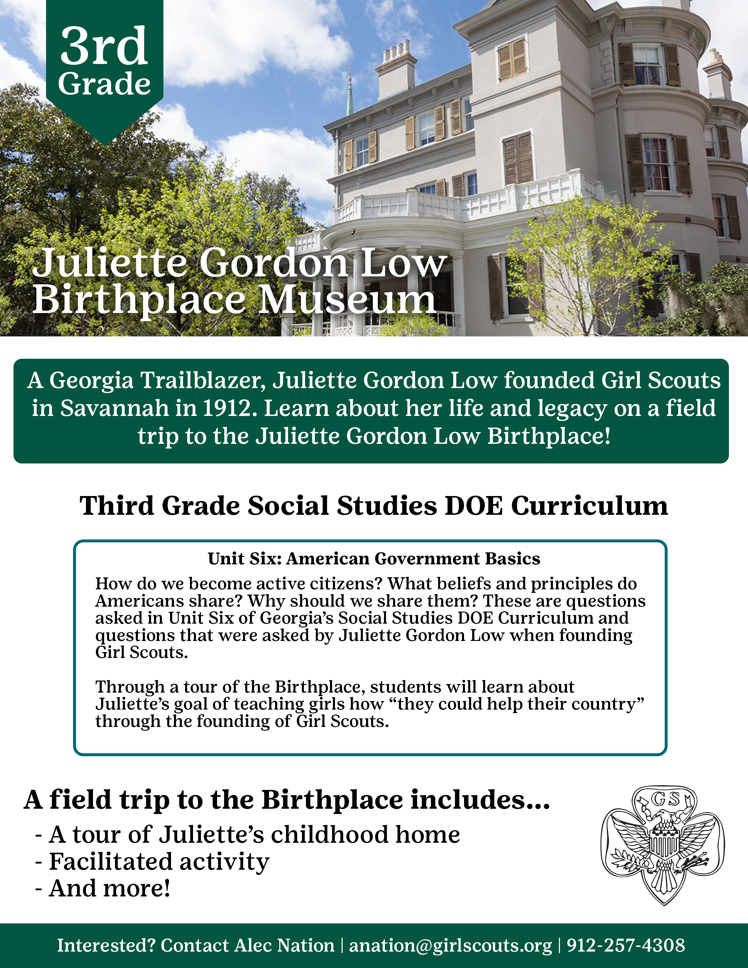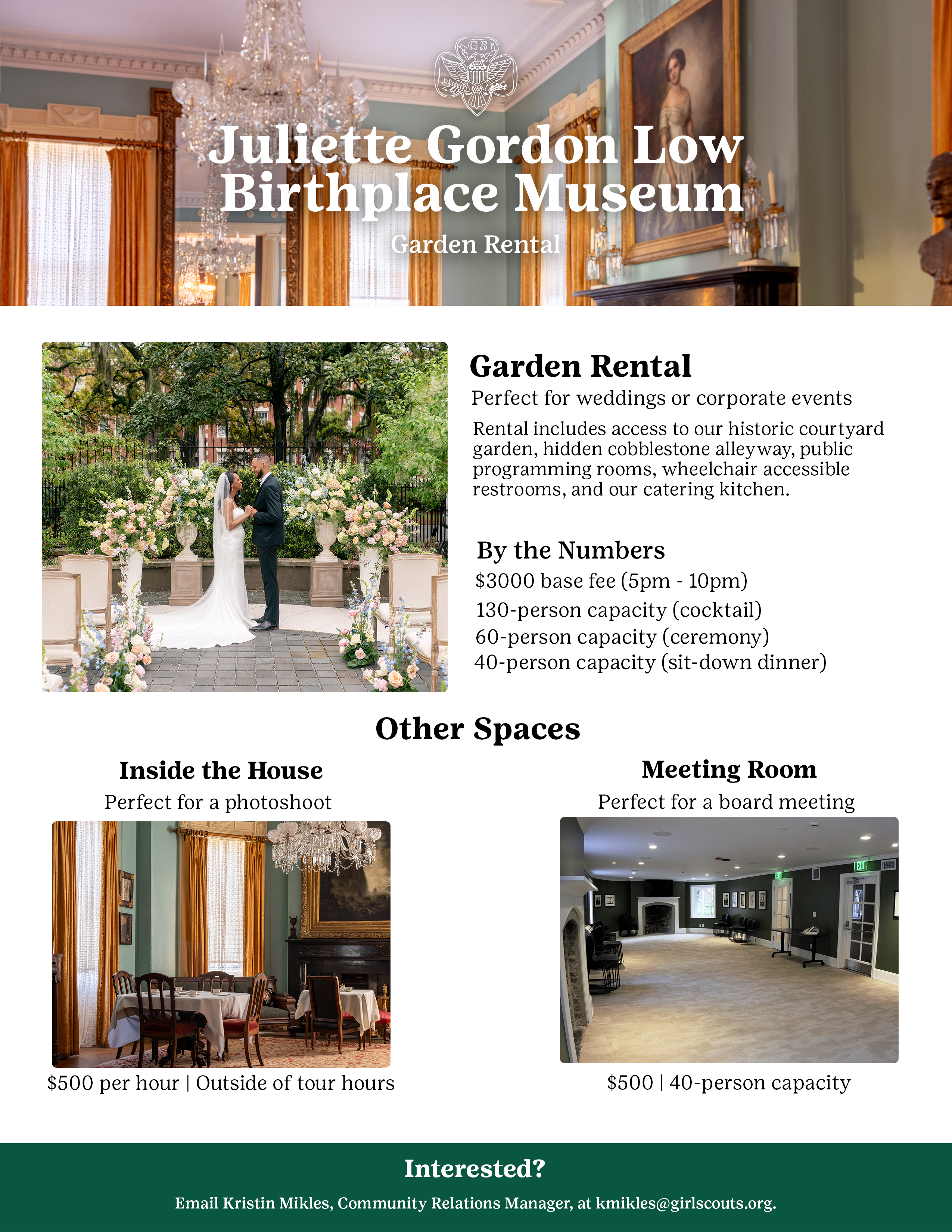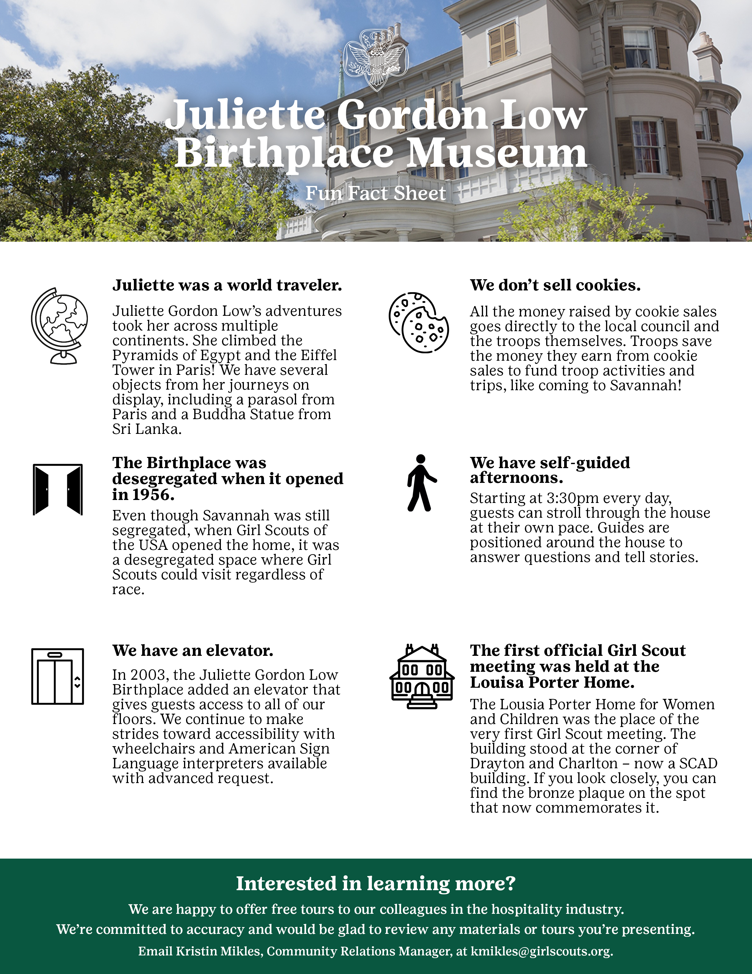 The Juliette Gordon Low Birthplace invites members of the Hospitality and Education industry to explore the story of Juliette Gordon Low and the Movement she inspired.