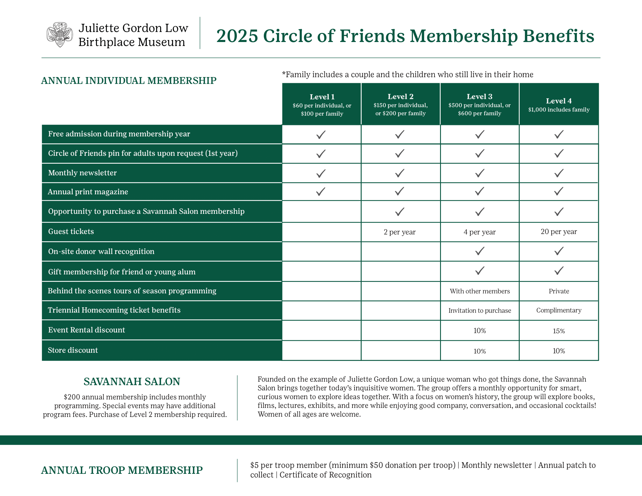 Interested in an exclusive Savannah Salon membership? Contact Executive Director Shannon Browning-Mullis at sbrowning-mullis@girlscouts.org to secure your spot.